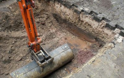 Wichtig bei Erdarbeiten in dichter Bebauung ist die Standsicherheit der Baugrube und die Sicherheit der Arbeiter. Hier muss mit viel Sachverstand vorangegangen werden um Unfälle und Schäden zu vermeiden.