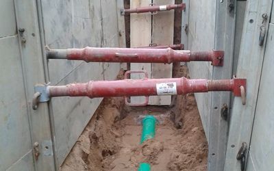 Neue Entwässerungsleitungen werden in Kunststoff verlegt und nennen sich KG Rohre. Sie sind mit einem steinfreien Bodenmaterial zu umhüllen, damit bei der Verdichtung keine Schädigungen am eingebauten Kanal entstehen können.