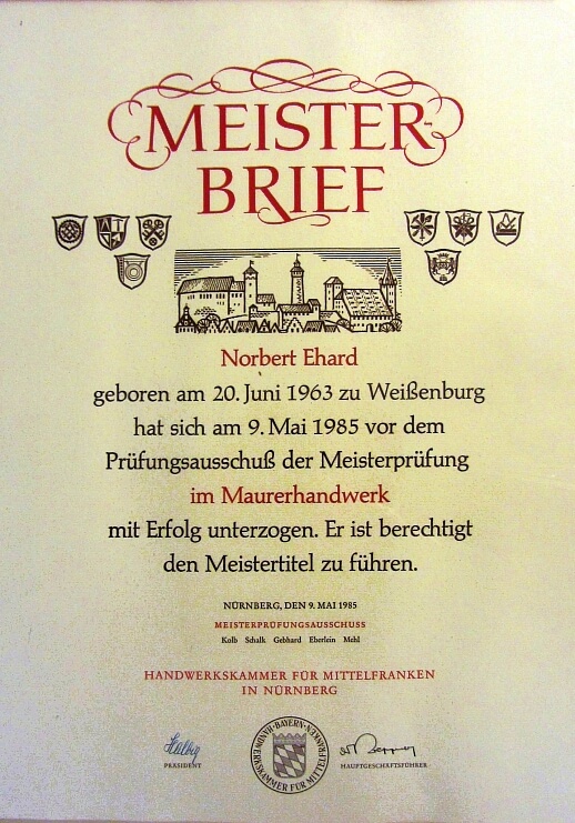 Maurermeister und Stuckateurmeister Norbert Ehard