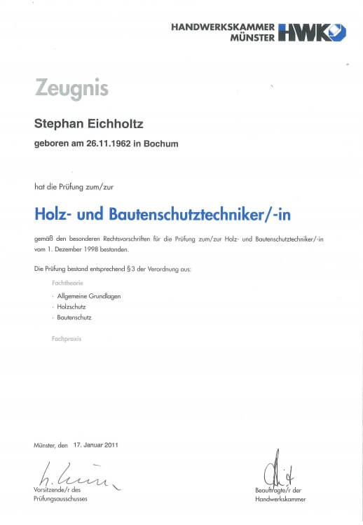 Holz- und Bautenschutztechniker (HWK) Stephan Eichholtz